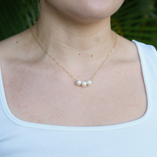 Triple Floating White Freshwater Pearl Necklace