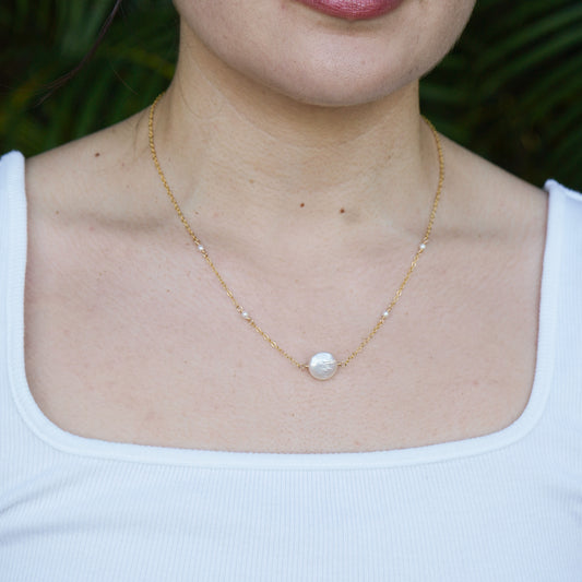 White Coin Pearl Necklace